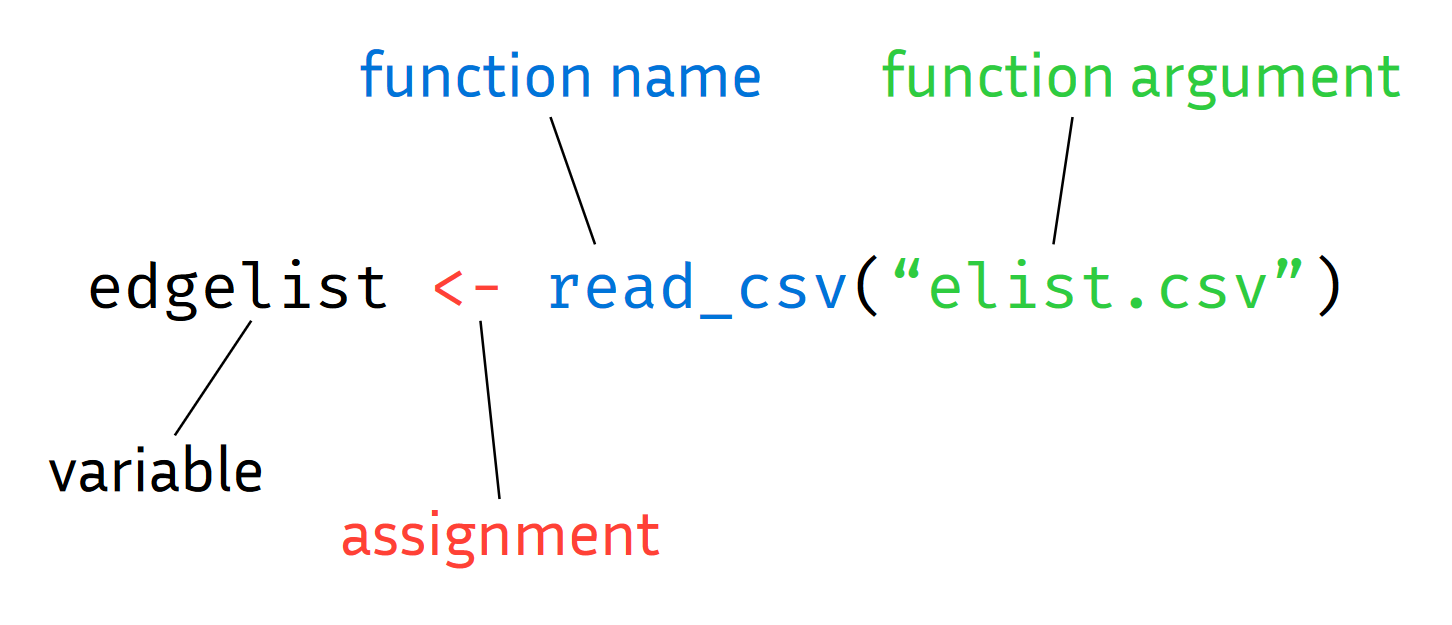 Functions can take inputs, called the arguments, which go into the parentheses right after the function name. Functions might also return some output, but they don’t have to. Most things you do in R will involve calling a function on some arguments and assigning the result to a variable name: